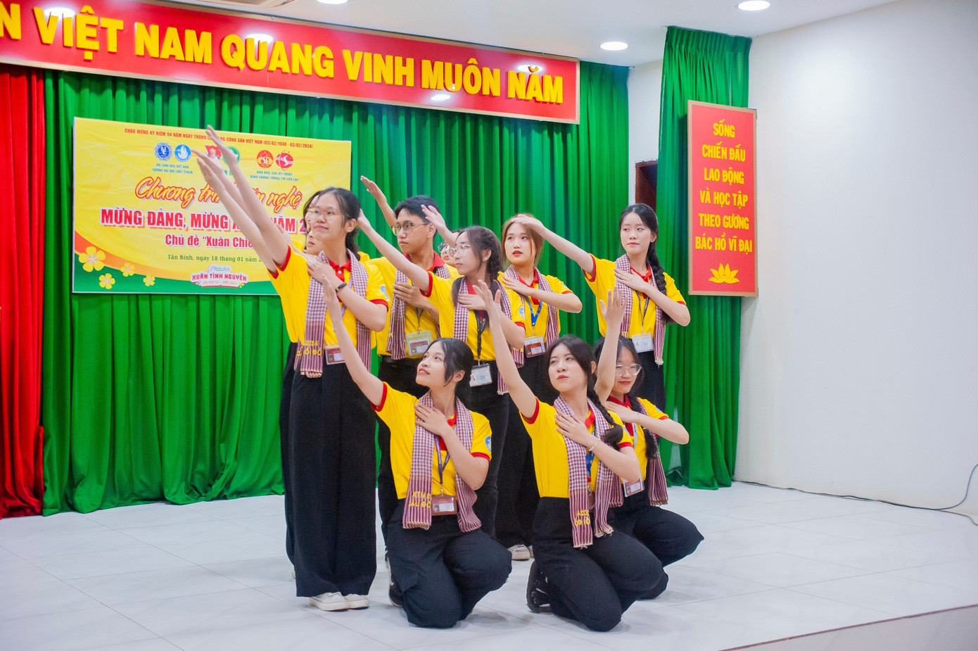 Chương trình văn nghệ đã có 9 tiết mục âm nhạc được biểu diễn phối hợp giữa Quận Đoàn quận Tân Bình, Kho K99, Cục Kỹ thuật Binh chủng Thông tin Liên lạc và Đoàn trường ĐH Luật TP. HCM. Các tiết mục với nội dung đề cập đến những giá trị văn hóa, đạo đức truyền thống dân tộc, uống nước nhớ nguồn, nêu cao truyền thống đấu tranh, xây dựng và bảo vệ đất nước của các thế hệ cha ông, nêu cao tinh thần yêu quê hương, yêu đất nước, thể hiện nhiệt huyết, sức trẻ, tinh thần xung kích, tình nguyện, khát vọng cống hiến vươn lên tuổi trẻ thời đại mới.