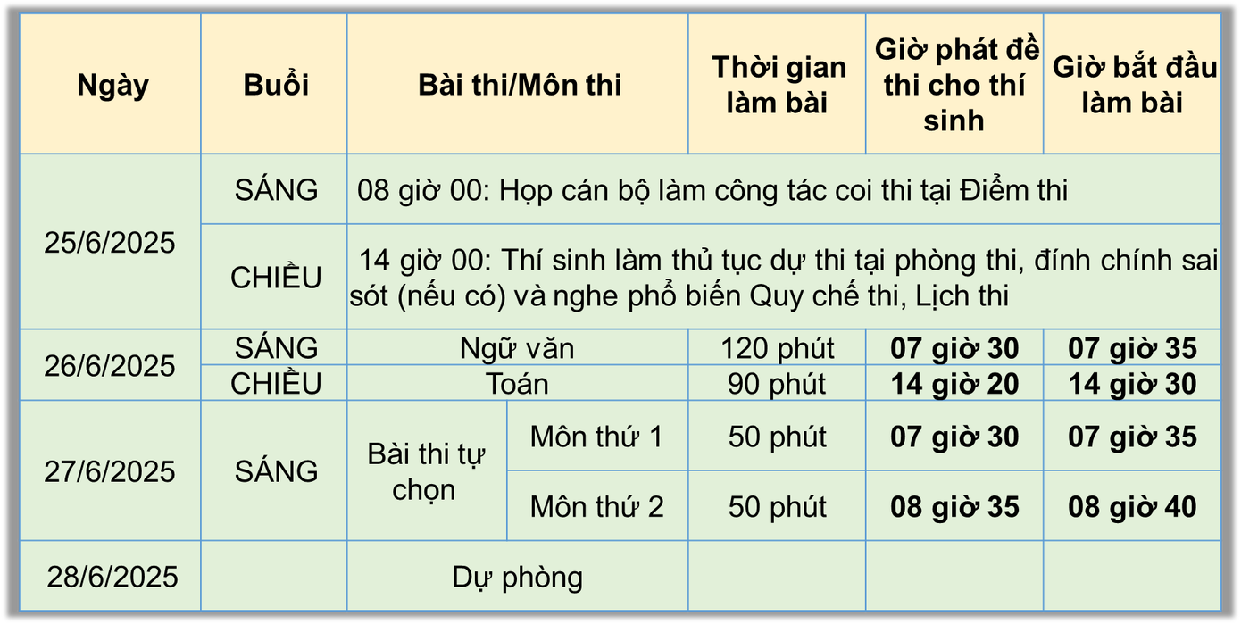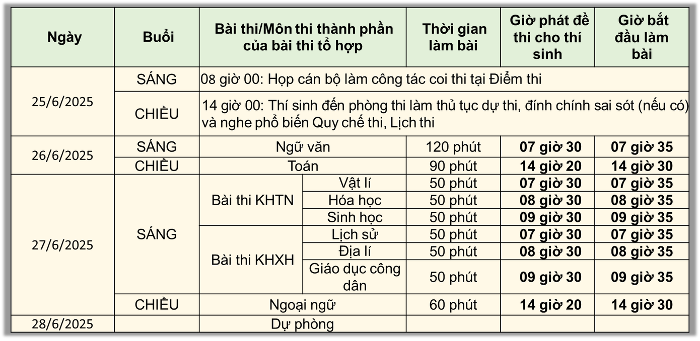Đặc biệt, thí sinh ghi nhớ quy định, trong ngày thi, nếu đến muộn 15 phút kể từ khi có hiệu lệnh tính giờ làm bài sẽ không được vào khu vực thi môn đó.