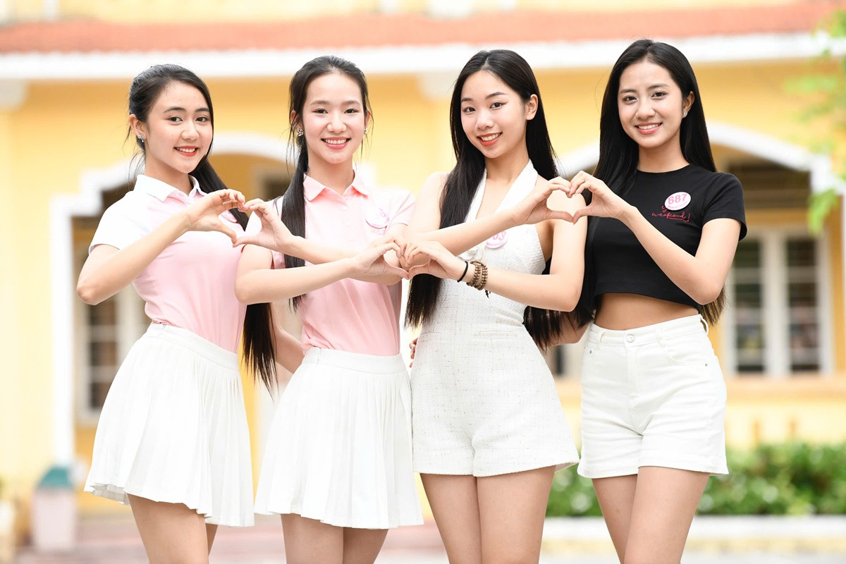 Thí sinh Hà Trúc Linh (ngoài cùng bên phải) chia sẻ: "Tôi không muốn đếm ngược tới đêm chung kết vì vẫn còn nhớ khoảnh khắc gắn bó với các bạn. Tuy nhiên, tôi phấn khích vì sắp được mang đến cho khán giả những màn trình diễn ấn tượng trong đêm chung kết."