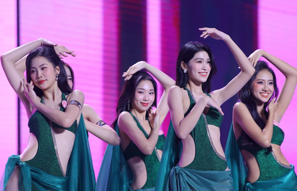 Dàn thí sinh khoe vẻ đẹp hình thể, tràn đầy năng lượng và tự tin trên nền nhạc Son của nhạc sĩ Đức Nghĩa. Hơn 3.000 khán giả tại Cung thể thao Quần Ngựa đã không ngừng cổ vũ, tiếp thêm động lực cho các người đẹp ở đêm thi Chung khảo Hoa hậu Việt Nam 2024.