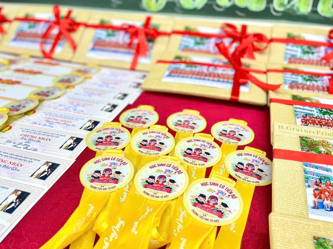 Sau buổi lễ chia tay cuối học kỳ II vừa qua, nhiều phụ huynh lớp 1A3, Trường Tiểu học Tứ Hiệp (Thanh Trì, Hà Nội) "khoe" những tờ nhận xét, những tấm huy hiệu hết sức dễ thương về con mình mà họ nhận được từ cô giáo chủ nhiệm lớp.
