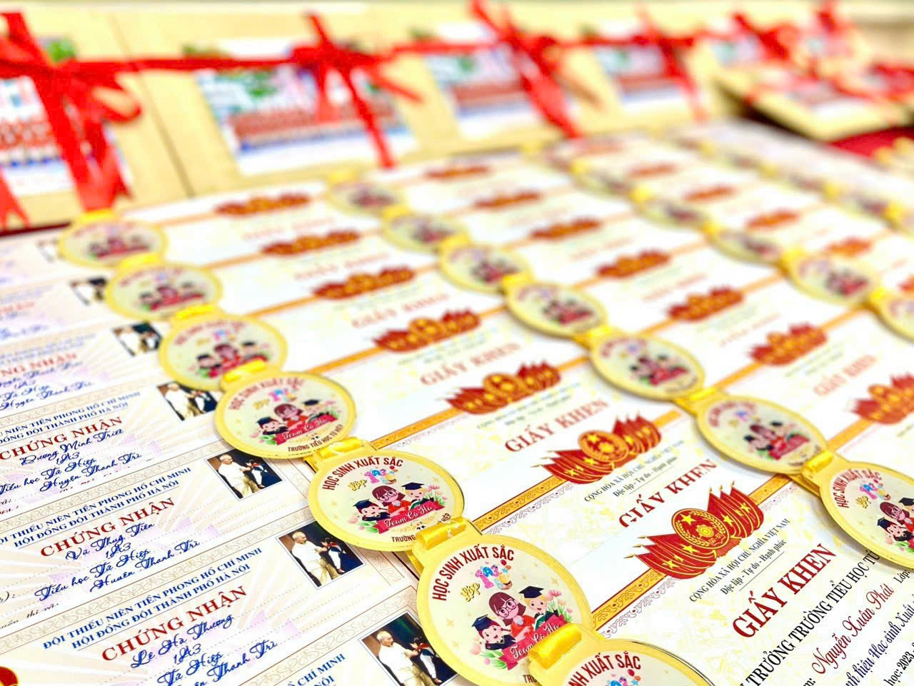 Thay vì những bản thông báo kết quả học tập kèm nhận xét học sinh in đen trắng giản dị, lần này, phụ huynh nhận về những phiếu nhận xét, những bức ảnh và huy hiệu được thiết kế tươi vui, với phần đánh giá và cảm ơn rất đáng yêu.
