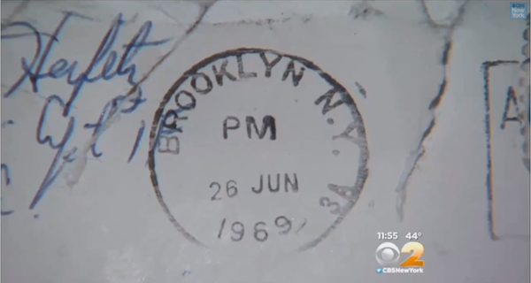 Dấu bưu điện cho thấy lá thư được gửi từ ngày 26/1/1969. Ảnh: CBSNewYork/ Youtube