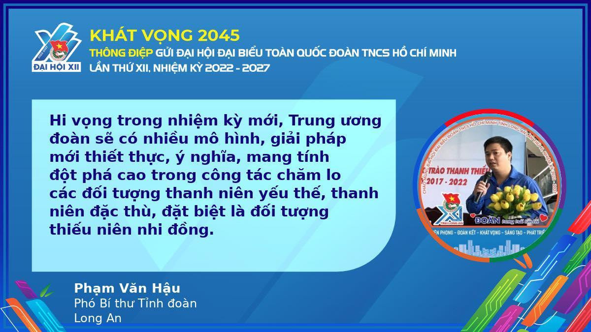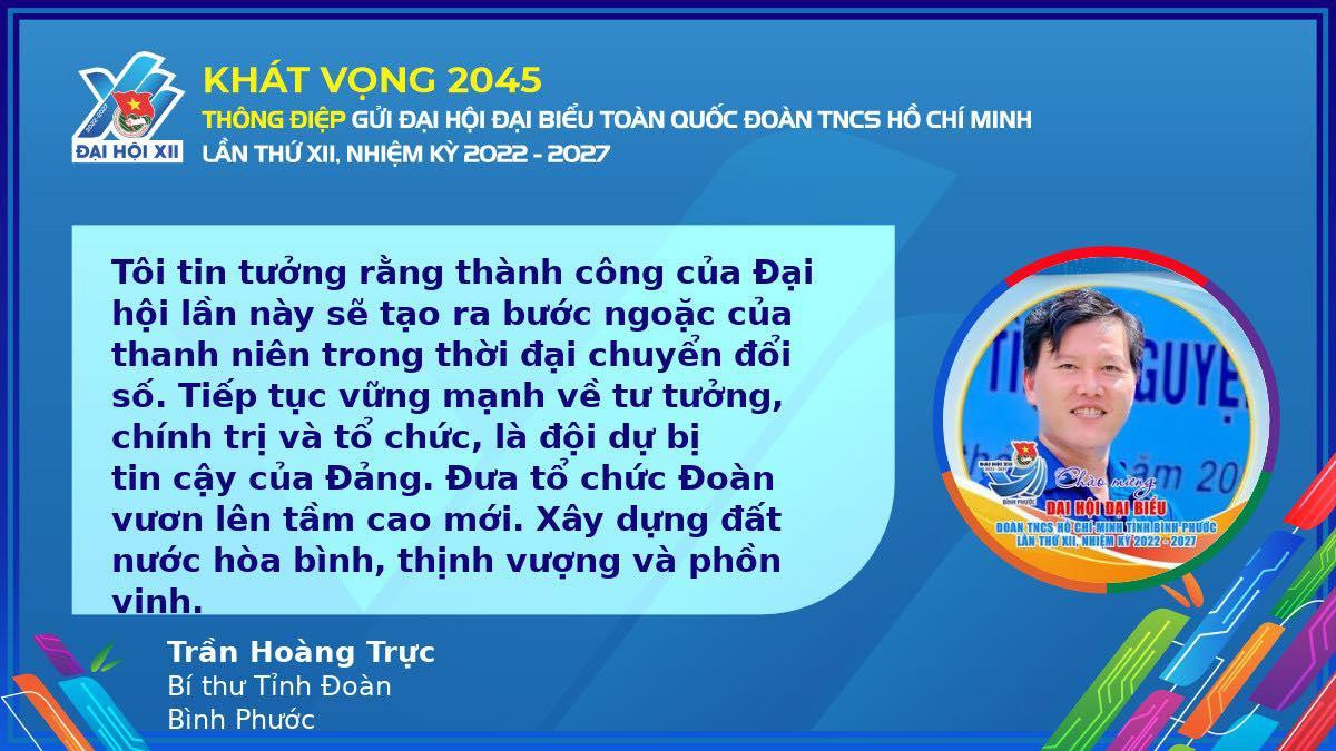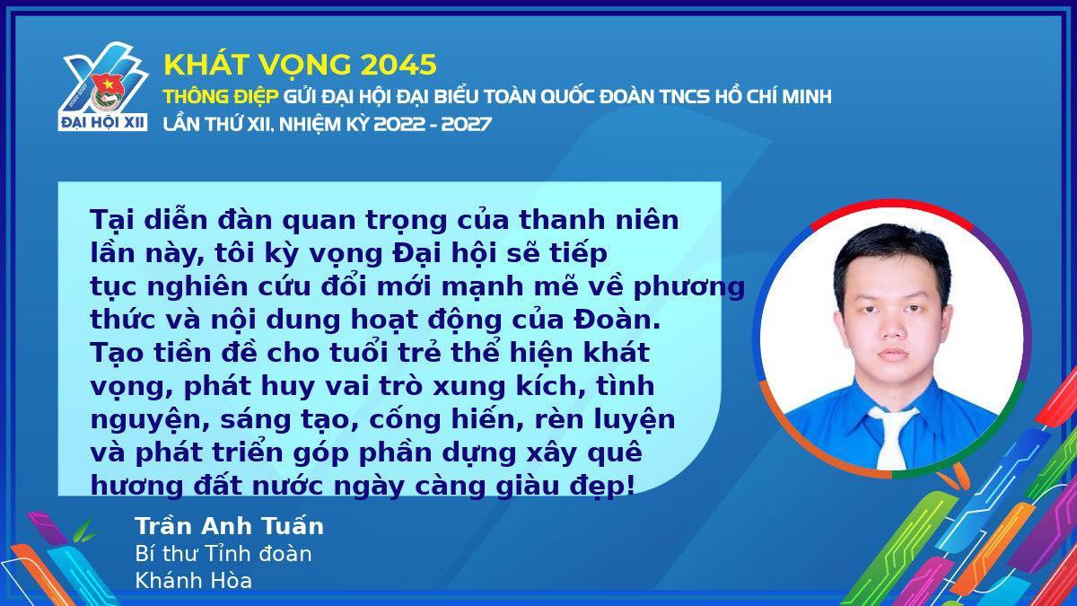 Đại hội Đoàn toàn quốc lần thứ XII được tổ chức từ ngày 14 - 16/12, tại Thủ đô Hà Nội, với khẩu hiệu hành động "Tuổi trẻ Việt Nam Khát vọng – Tiên phong - Đoàn kết - Bản lĩnh - Sáng tạo".
