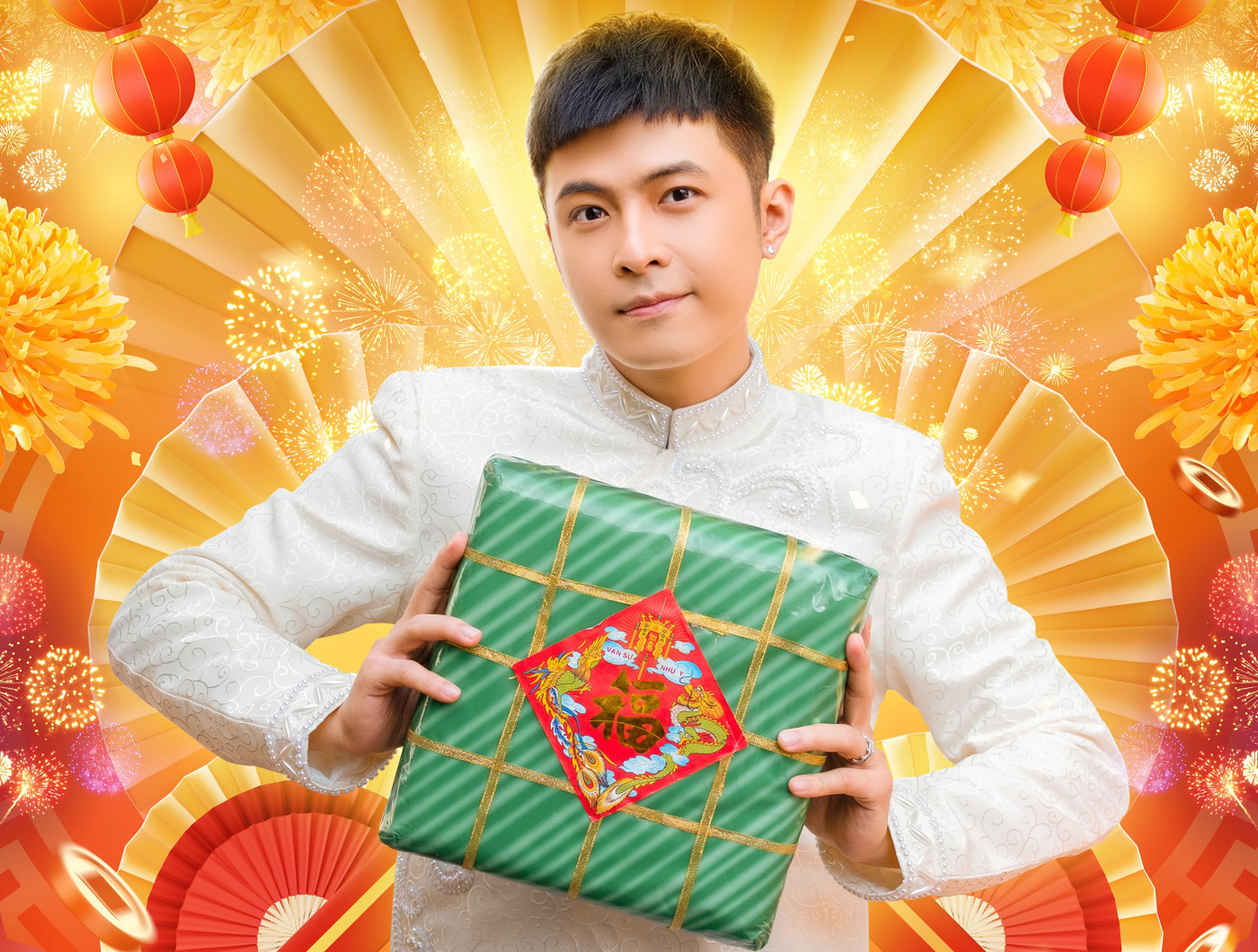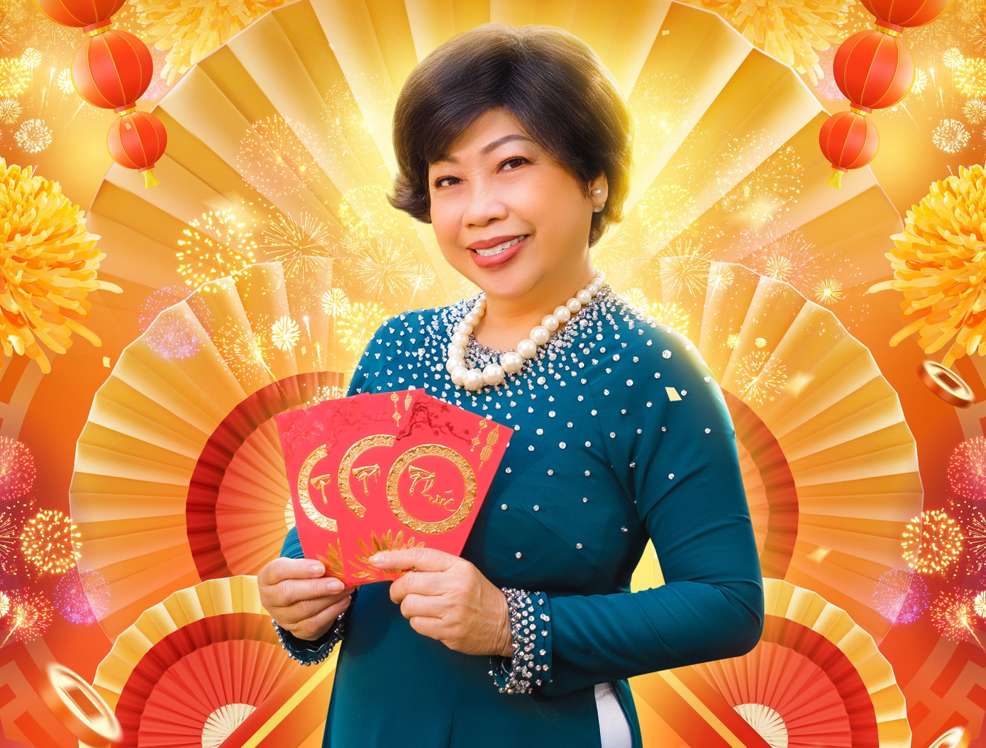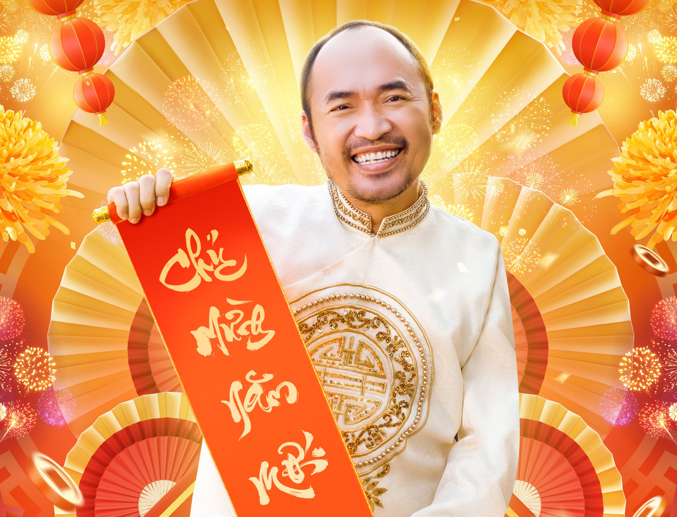 Hình ảnh quen thuộc của bánh chưng, bánh tét, câu đối đỏ, phong bao lì xì, dưa hấu lần lượt xuất hiện giữa các tông màu vàng, đỏ bắt mắt.