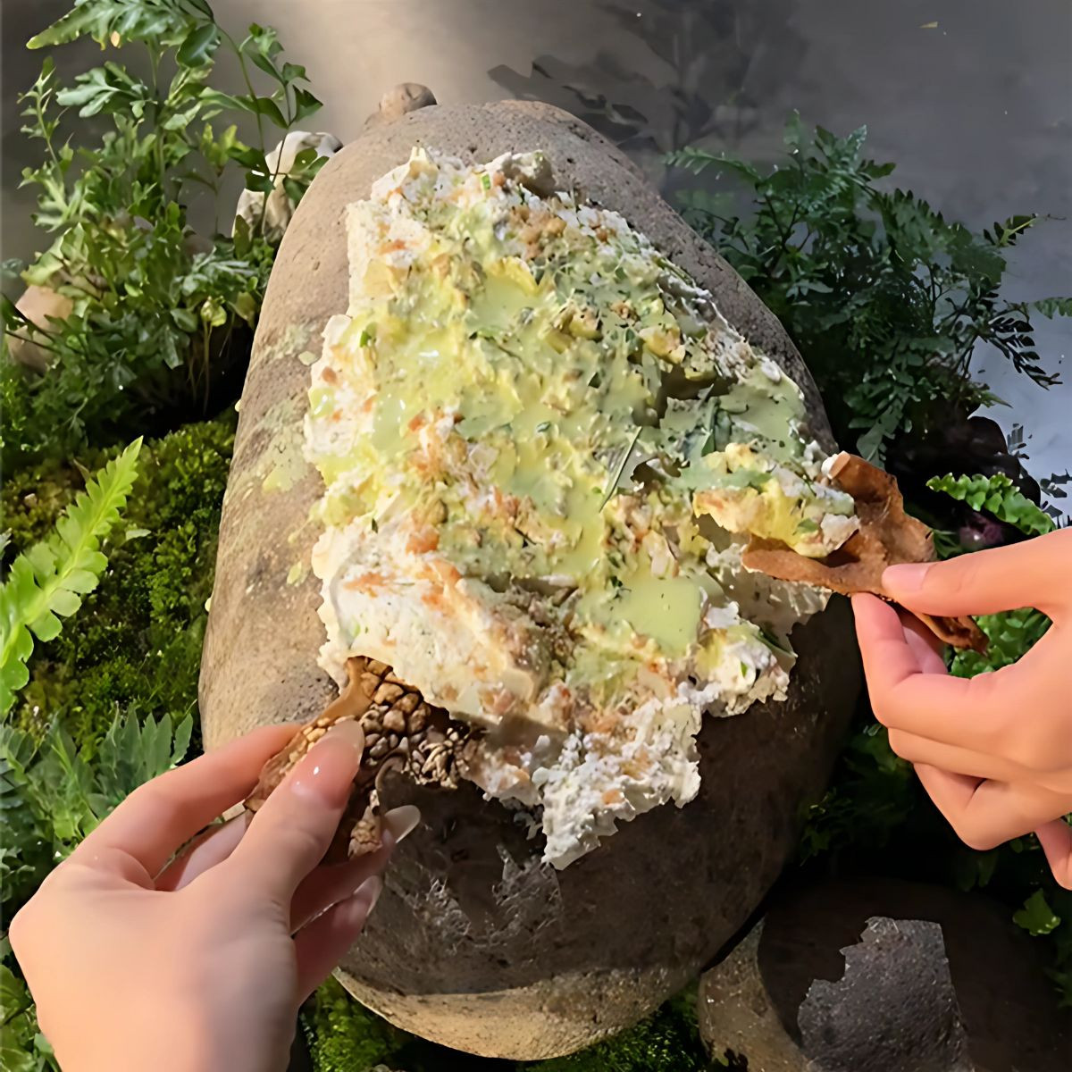Món cuối cùng và cũng gây tranh cãi nhất chính là "hoa trên phân voi" - một món tráng miệng được bày trí công phu như một tác phẩm nghệ thuật rừng xanh. Theo giải thích của nhà hàng, chất nền được làm từ phân voi đã được xử lý qua ba bước: Khử trùng, sấy khô và nghiền mịn, hoàn toàn không có mùi và an toàn tuyệt đối.