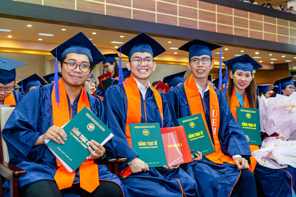 Tại lễ tốt nghiệp thạc sĩ, tiến sĩ đợt 3 năm 2020 của UEH, có 4 tân tiến sĩ làm luận án và bảo vệ bằng tiếng Anh, 13 nghiên cứu sinh đã công bố 6 bài báo quốc tế uy tín (2 ISS, 4 Scopus) và 2 bài hội thảo quốc tế.