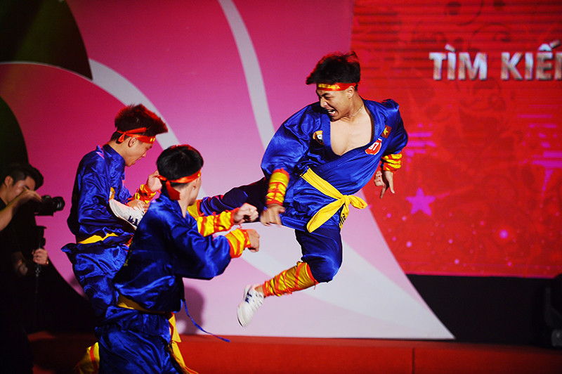 Tiết mục võ thuật Hào khí Việt Nam của thí sinh Lê Huy Hà (ĐH Sự phạm Thể dục Thể thao Hà Nội) xuất sắc giành giải nhất cuộc thi.