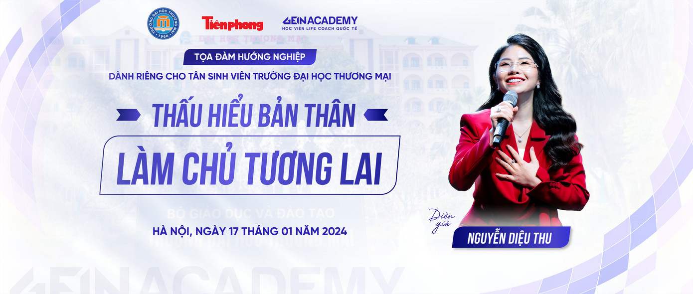 Chương trình toạ đàm hướng nghiệp: “Thấu hiểu bản thân - Làm chủ tương lai” số 4 được tổ chức vào 8:30, thứ Tư, ngày 17/1/2024, tại Trường Đại học Thương mại, 79 Hồ Tùng Mậu, Cầu Giấy, Hà Nội. Trước đó, chương trình đã được tổ chức thành công tại trường Đại học Xây dựng Hà Nội, trường Đại học Công nghiệp Hà Nội, trường Đại học Ngoại thương với sự tham dự trực tiếp của hàng nghìn sinh viên.