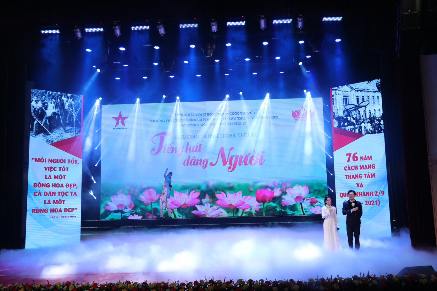 Đại dịch Covid-19 với những diễn biến phức tạp từ tháng 4-2021 đến nay đã làm đảo lộn nhiều lĩnh vực trong đời sống đất nước ta. Theo kế hoạch ban đầu của Ban tổ chức, lễ Tổng kết, trao giải Cuộc thi viết “Những tấm gương bình dị mà cao quý” lần thứ 12 (năm 2020-2021) và Chương trình Giao lưu – Nghệ thuật “Tiếng hát dâng Người” được tổ chức vào ngày 03/6/2021 nhân dịp Kỷ niệm 73 năm ngày Chủ tịch Hồ Chí Minh ra lời kêu gọi Thi đua Ái quốc, 110 năm Ngày Bác Hồ ra đi tìm đường cứu nước và 96 năm Ngày Báo chí Cách mạng Việt Nam. Tuy nhiên, do tình hình dịch Covid-19 diễn biến phức tạp nên Ban tổ chức quyết định lùi ngày và thay đổi phương pháp tổ chức chương trình. Chương trình đã được thay đổi từ “Truyền hình trực tiếp” có khán giả tham dự sang tổ chức theo hình thức “Ghi hình phát sóng” phục vụ khán giả xem truyền hình và không mời khán giả đến địa điểm tổ chức để bảo đảm các yêu cầu phòng, chống dịch.