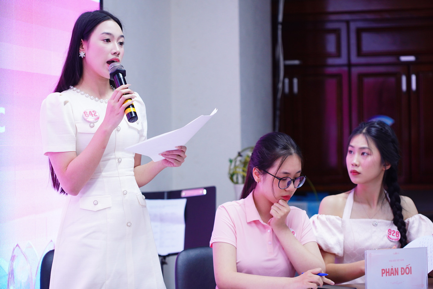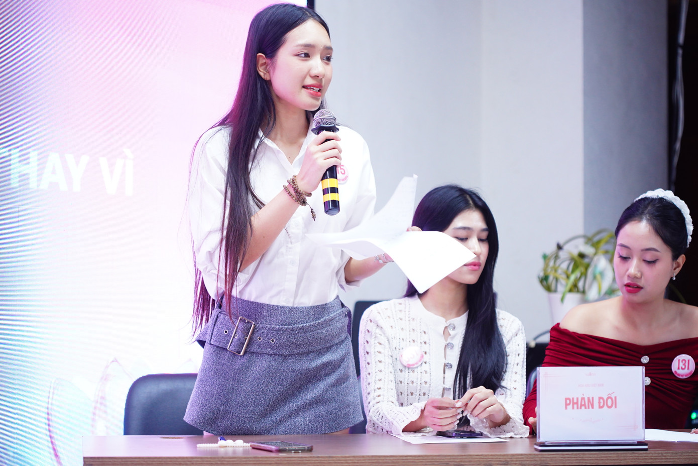 Tại buổi học, các thí sinh được rèn luyện kỹ năng thuyết trình và được đặt vào những tình huống giả định để xử lý – từ các câu hỏi về môi trường, giáo dục, bình đẳng giới đến các vấn đề nóng của xã hội hiện đại như AI, mạng xã hội hay văn hóa ứng xử. Không khí tranh luận sôi nổi, những màn trình bày thuyết phục cùng ánh mắt sáng rực tự tin đã khiến buổi tập huấn trở thành một điểm nhấn đậm nét trong hành trình tìm kiếm tân ‘Hoa hậu Việt Nam’.