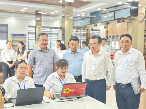 Lãnh đạo TPHCM kiểm tra buổi vận hành thử nghiệm mô hình chính quyền 2 cấp tại phường Bình Thới mới ngày 12-6 .Ảnh: GIANG NAM
