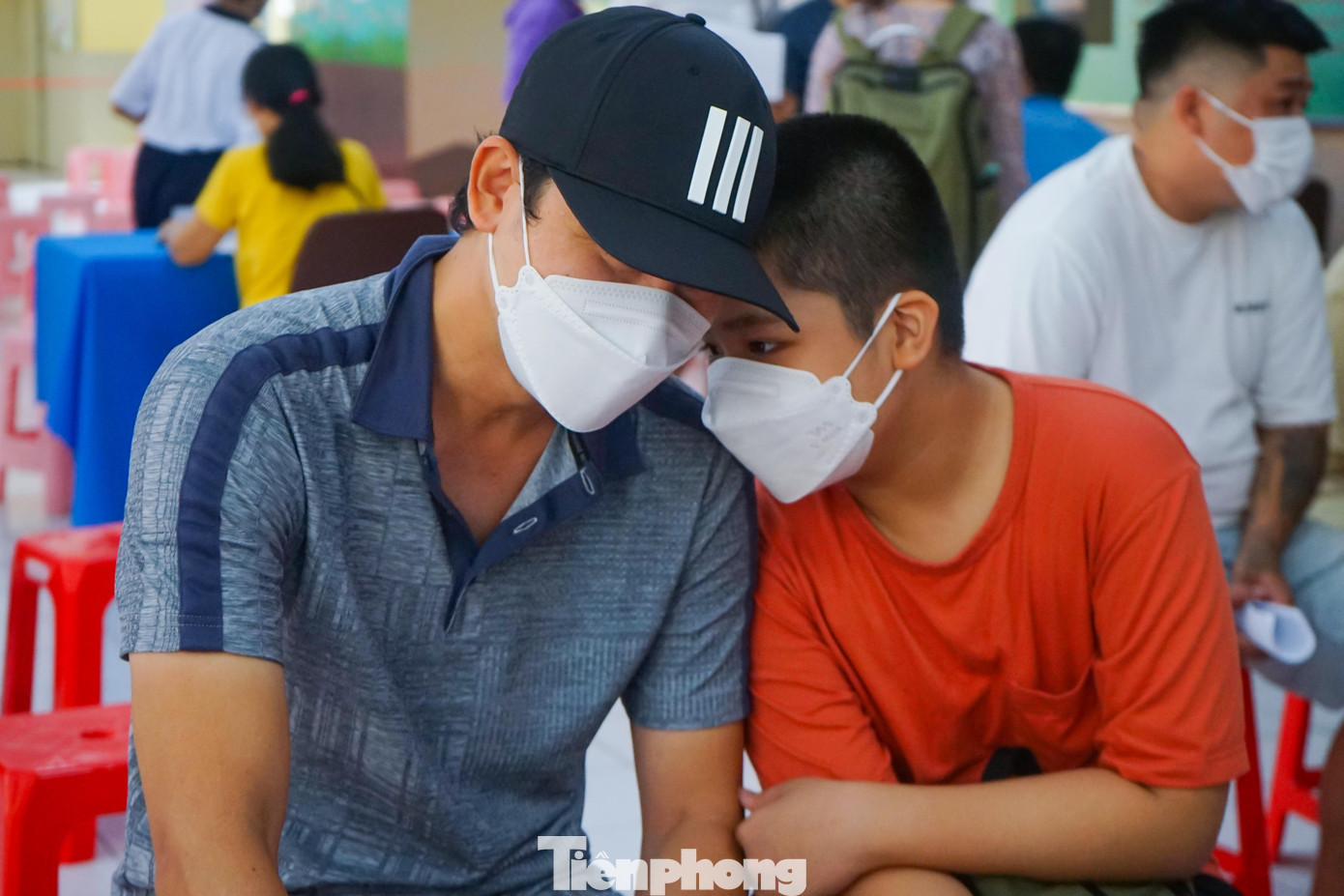 | Phụ huynh tỏ lo lắng cho con em mình trong lúc chờ tiêm |