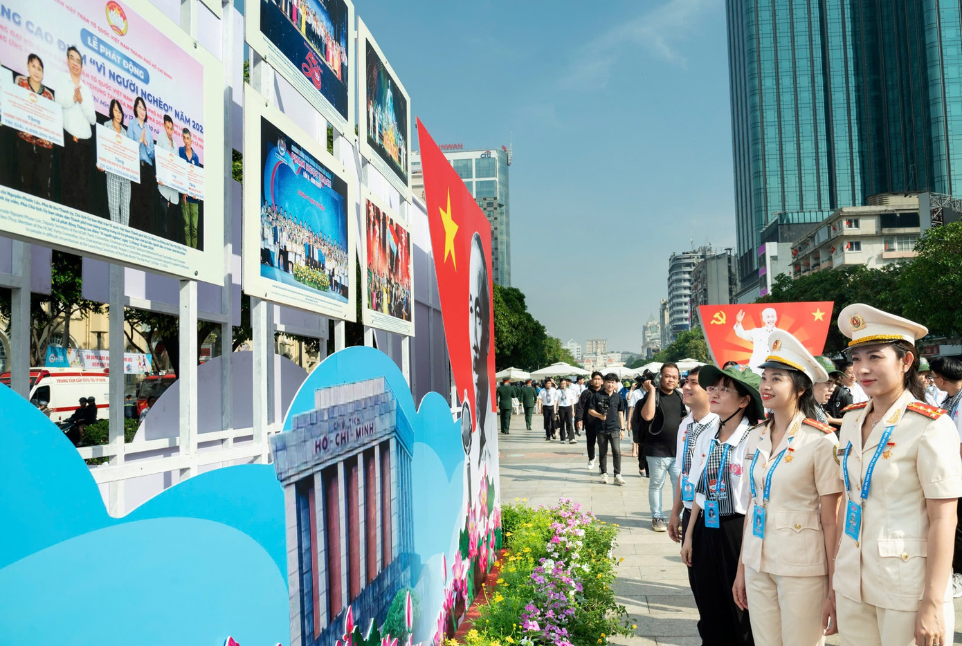 Sáng 17/5, tại Phố đi bộ Nguyễn Huệ (quận 1, TPHCM), ban tổ chức kỷ niệm các ngày lễ lớn TPHCM tổ chức khai mạc triển lãm chủ đề Chủ tịch Hồ Chí Minh - Người anh hùng dân tộc vĩ đại, kết tinh rạng ngời của đạo đức, trí tuệ, khí phách, lương tri của dân tộc Việt Nam và thời đại.