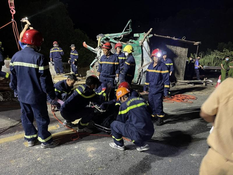 | Công an TT-Huế huy động gần 100 cán bộ, chiến sĩ làm công tác cứu nạn cứu hộ vụ tai nạn thảm khốc giữa đêm tối. Ảnh: CA |
