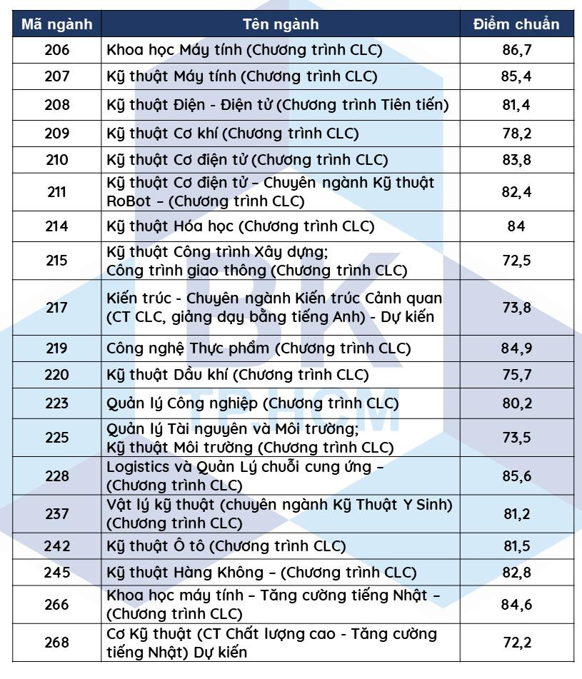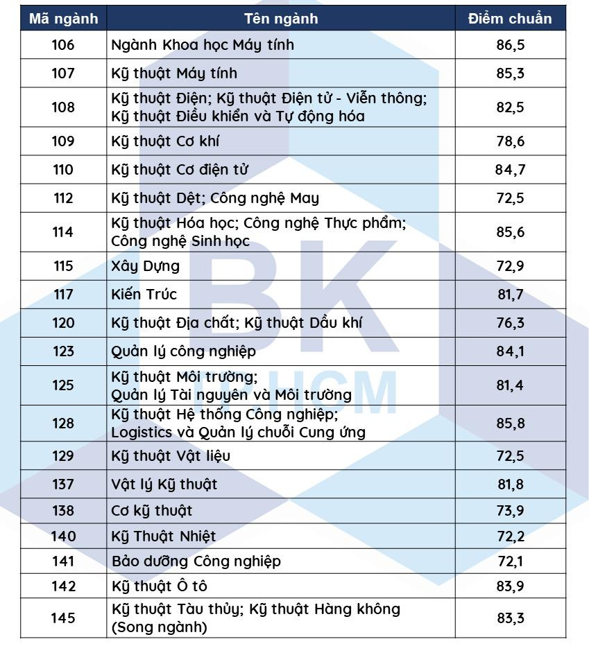 Theo đó, ngành có điểm trúng tuyển cao nhất là 86,7 điểm và thấp nhất là 72,1 điểm. Thí sinh đạt mức điểm chuẩn trở lên và đủ các điều kiện trúng tuyển vào trường sẽ được nhà trường công nhận trúng tuyển sau khi bổ sung giấy chứng nhận/bằng tốt nghiệp THPT hợp lệ.