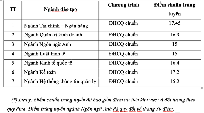 Theo đó, điểm chuẩn Chương trình đại học chính quy chất lượng cao; Chương trình đại học chính quy quốc tế song bằng là 106 (đã bao gồm điểm ưu tiên khu vực và đối tượng theo quy định).