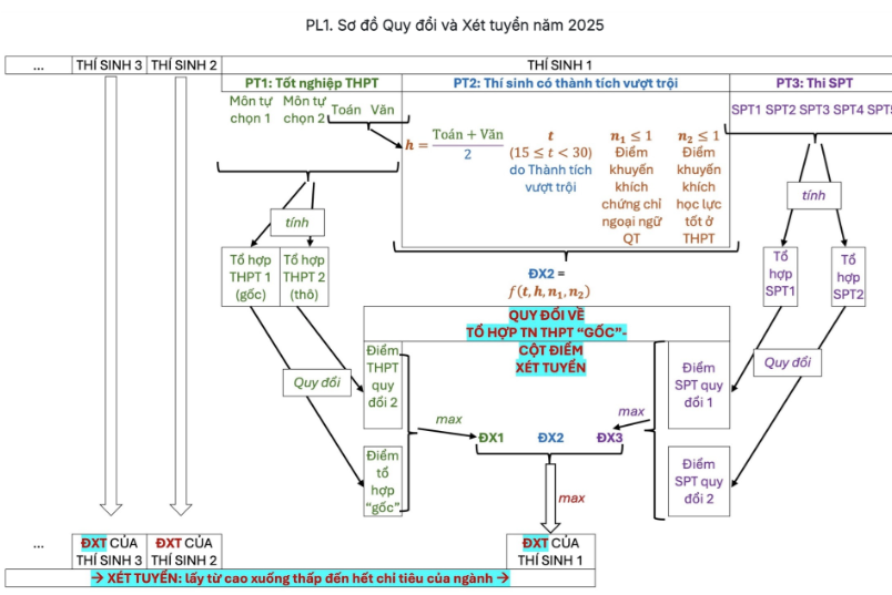 Trường cũng đưa ra sơ đồ quy đổi và cách thức tổ chức xét tuyển 2025: