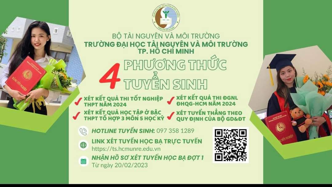 Theo đó, trường ĐH Tài nguyên và Môi trường TP. HCM xét tuyển theo 4 phương thức.