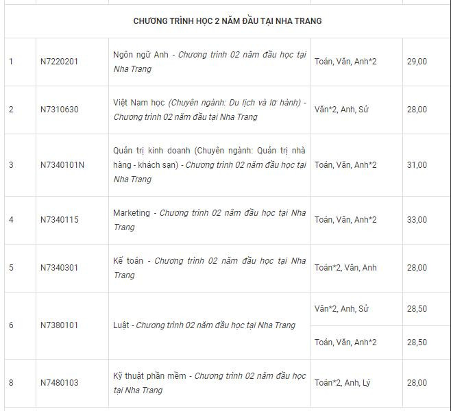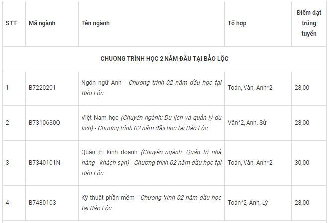 Đối với các ngành còn lại, thí sinh đạt điều kiện điểm trúng tuyển và đã hoàn tất hồ sơ dự thi đánh giá năng lực tiếng Anh sẽ có kết quả trúng tuyển vào chương trình dự bị tiếng Anh. Thí sinh có nguyện vọng nhập học vào trường phải đăng ký nhập học vào chương trình dự bị tiếng Anh của ngành thí sinh đạt điểm trúng tuyển.