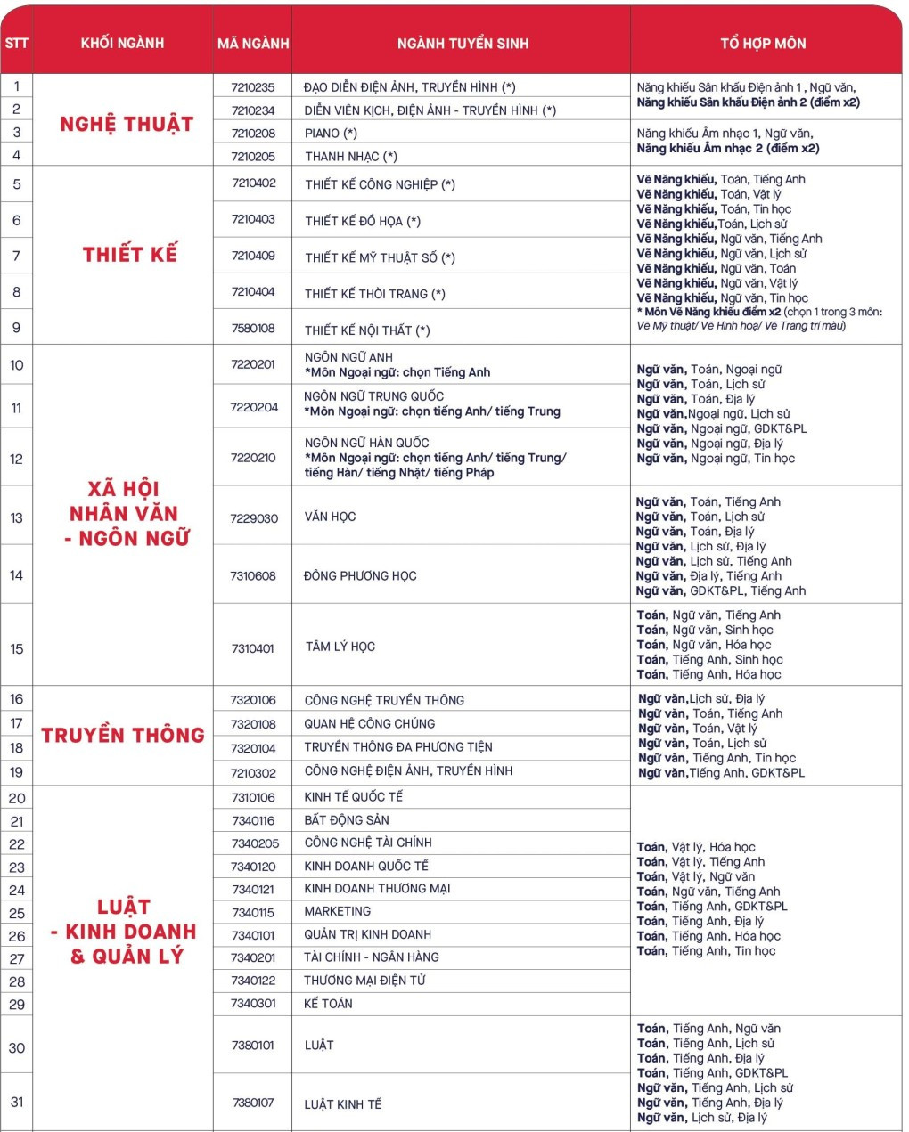Các tổ hợp tuyển sinh dự kiến của trường ĐH Văn Lang: