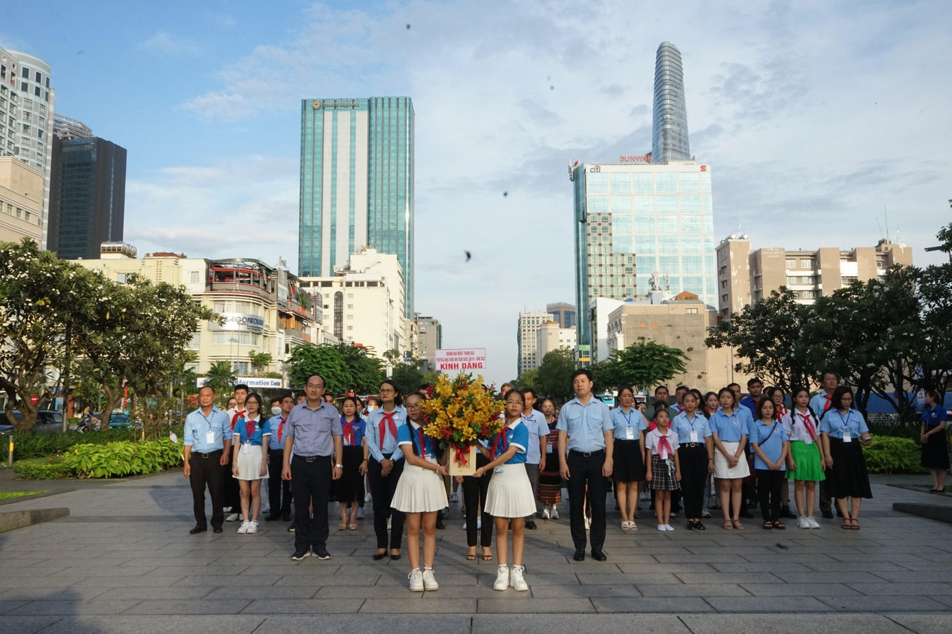 | Trước khi khai mạc Festival Nhà Thiếu nhi toàn quốc 2022, Hội đồng Đội Trung ương đã tổ chức Lễ dâng hương tại tượng đài Bác (phố đi bộ Nguyễn Huệ, Q. 1). (Ảnh: Hồng Nguyễn) |