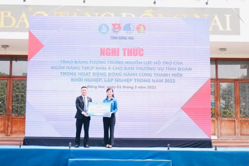 | Bí thư Tỉnh Đoàn Đồng Nai Hồ Hồng Nguyên tặng hoa các đơn vị đồng hành với các chương trình của Tháng Thanh niên. |