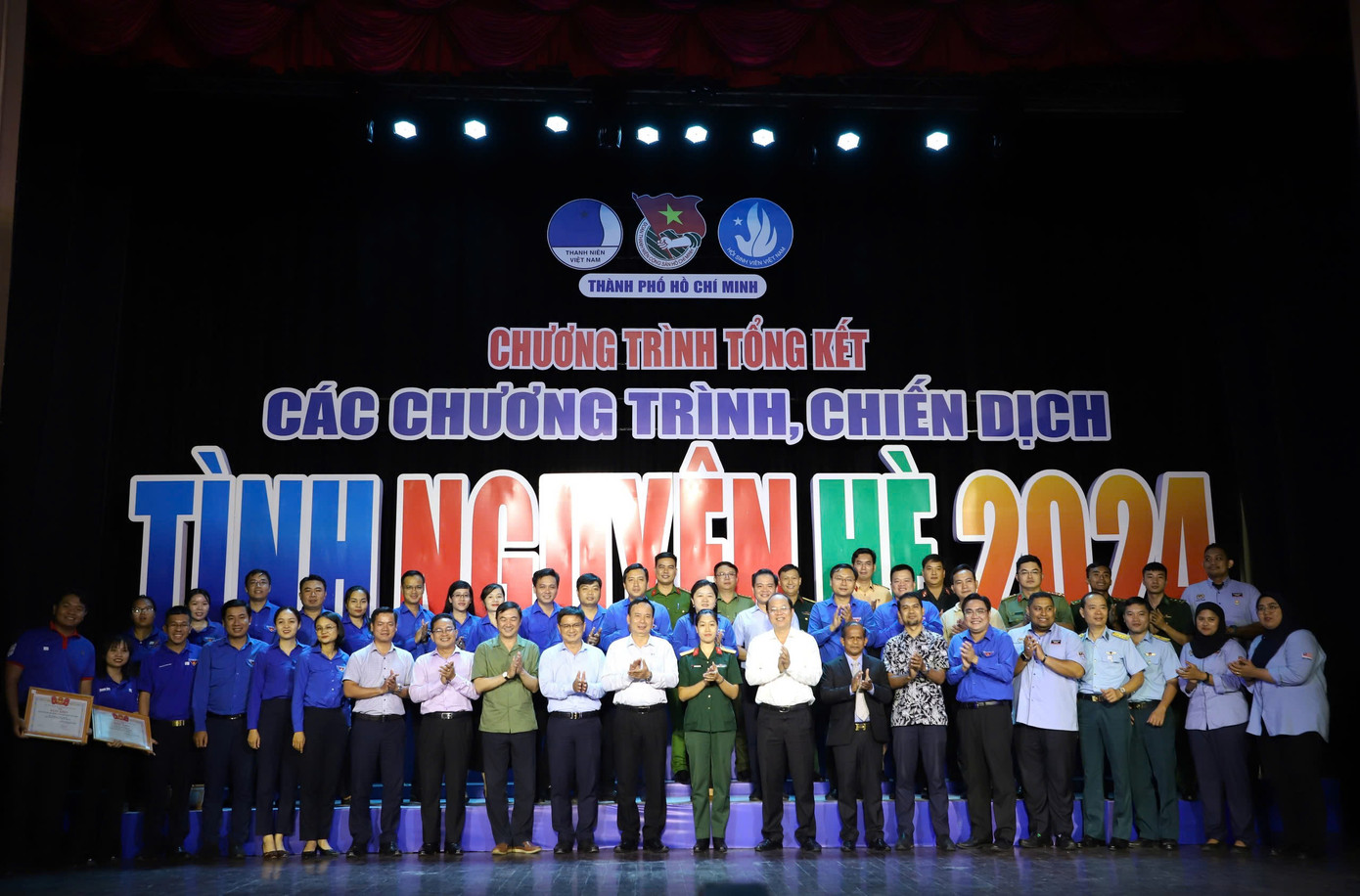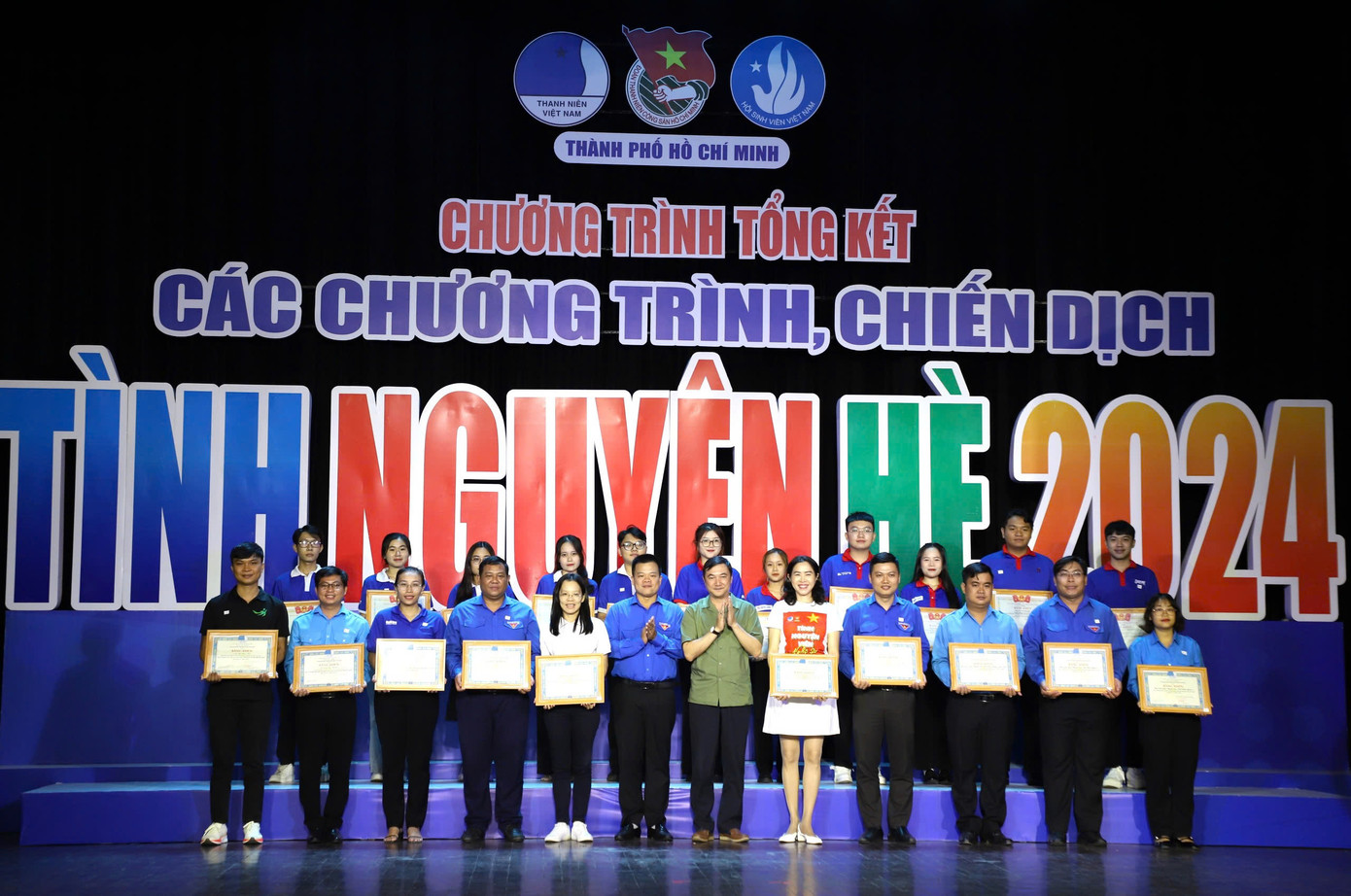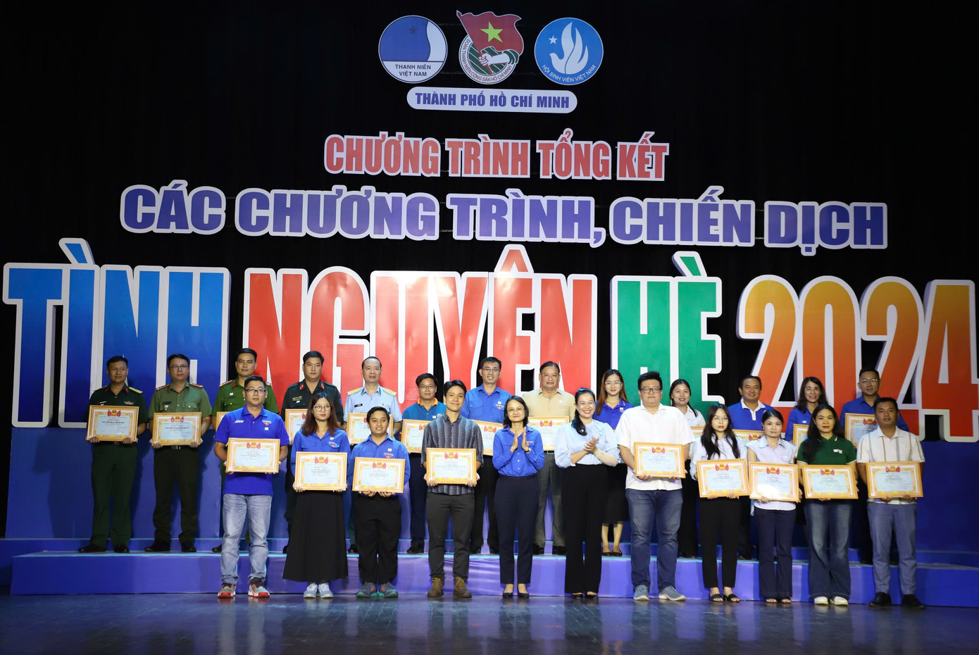 | Thành Đoàn, Hội LHTN, Hội Sinh viên TP. HCM tặng giấy khen cho các tập thể, cá nhân tiêu biểu trong công tác tổ chức, tham gia các chương trình, chiến dịch tình nguyện Hè năm 2024. (Ảnh: Ngô Tùng) |