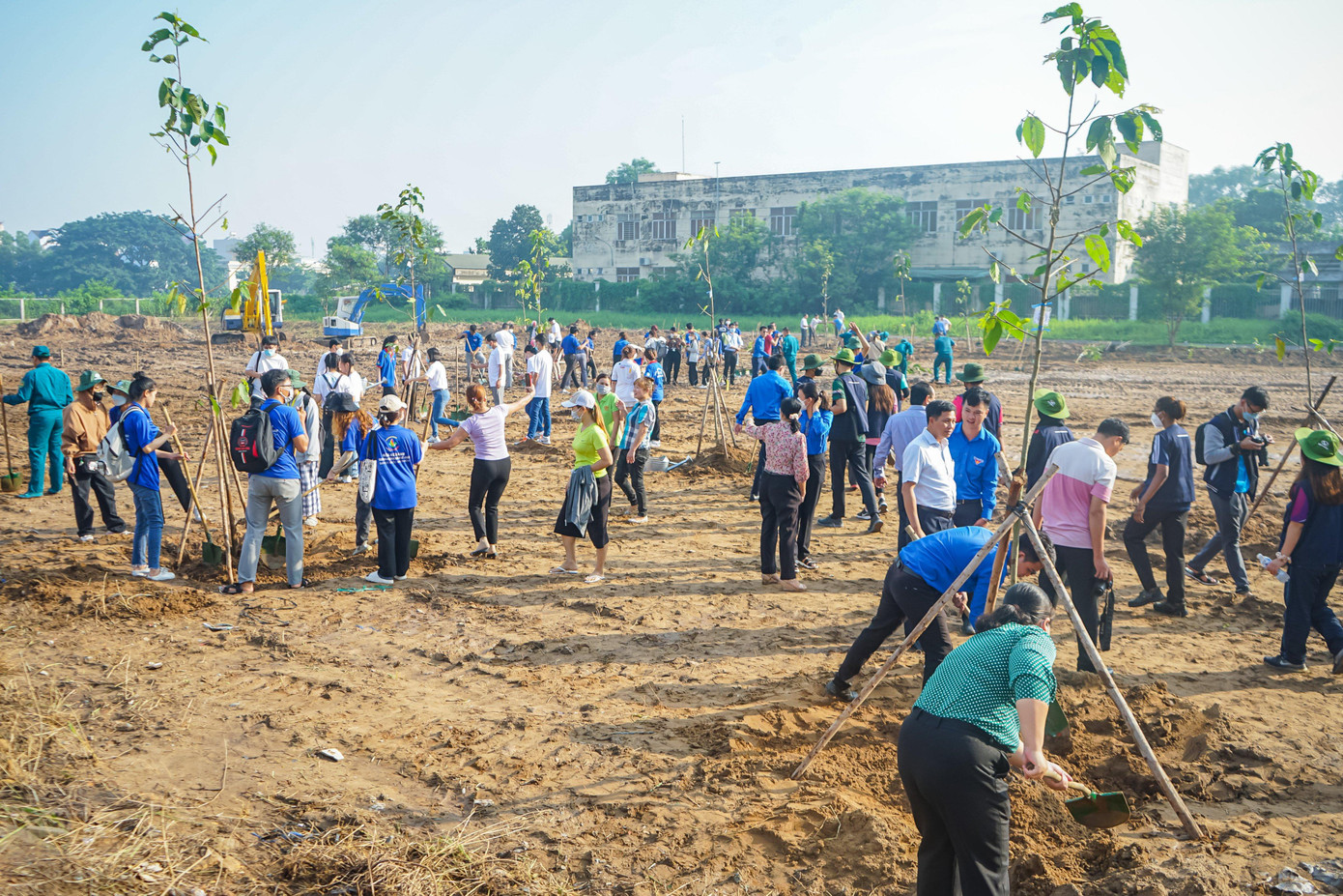 Sau lễ khai mạc chương trình, đồng loạt hơn 2.000 đoàn viên thanh niên cùng với các đại biểu cùng nhau trồng mới 500 cây dầu rái tại 3 phường: Hiệp Thành, An Phú Đông, Tân Chánh Hiệp (Q. 12).