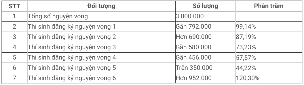 Đặc biệt, năm nay có 3,8 triệu nguyện vọng đăng ký xét tuyển đại học, cao đẳng. Chi tiết như sau: