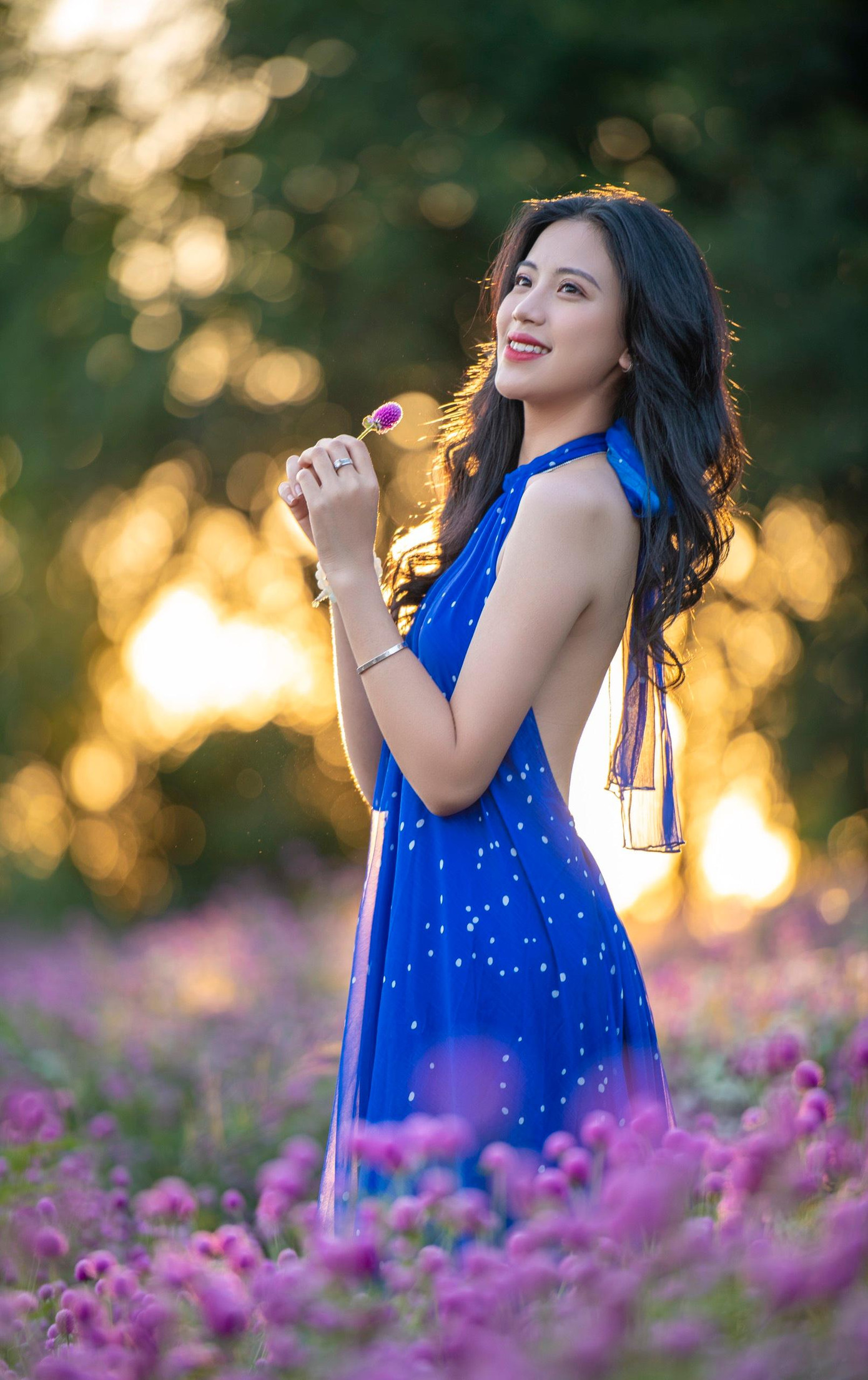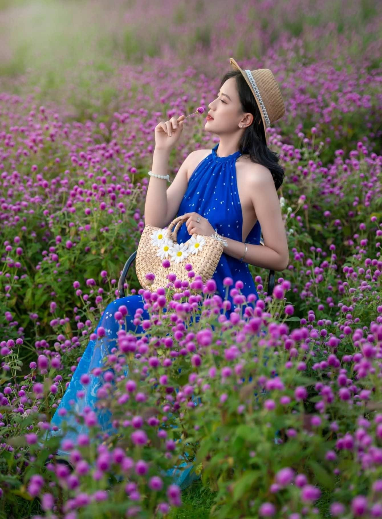 Xuyên suốt bộ ảnh là tông màu xanh, tím tạo cảm giác nhẹ nhàng, dịu dàng cho người xem. Như ngầm ý về cách mà cô gái này đối diện với những gam màu cuộc sống cũng dung dị và đầy an nhiên.