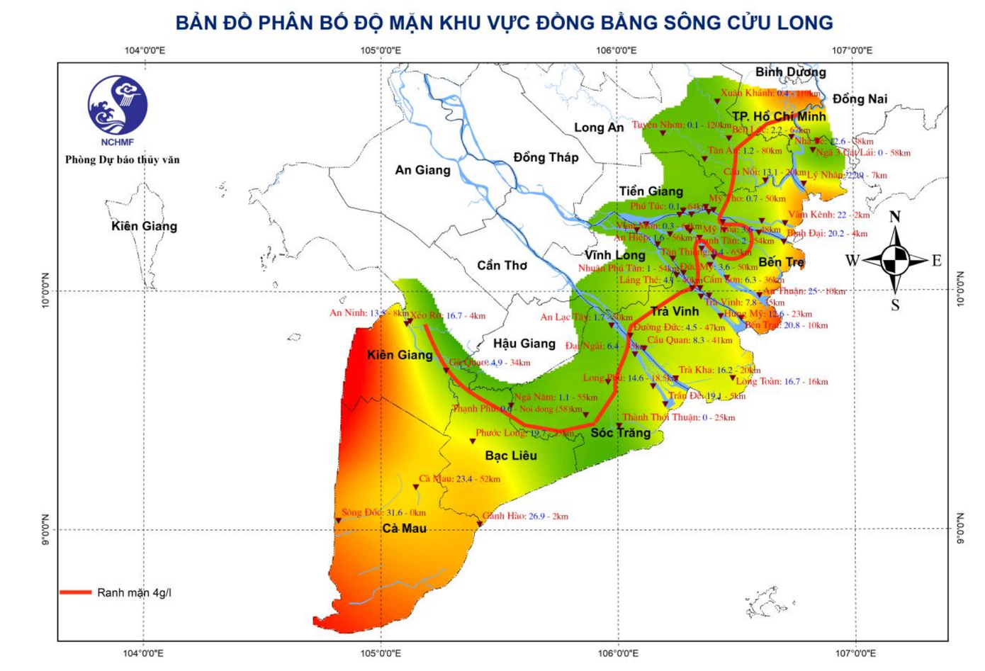 Dự báo đặc trưng giá trị độ mặn tại các trạm trên địa bàn TPHCM vào kỳ giữa tháng 2/2025 như sau: