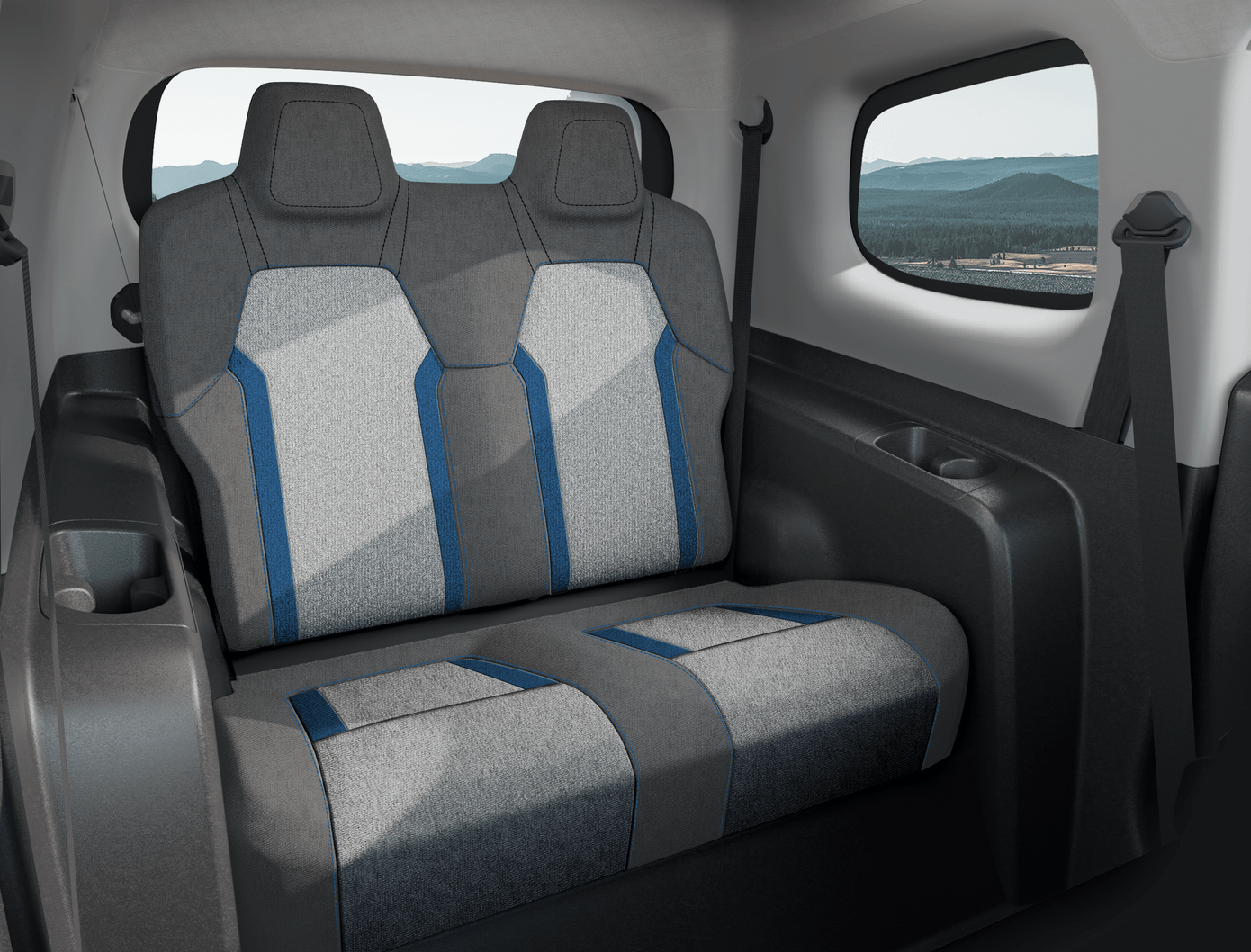 Nội thất xe được thiết kế đơn giản với cụm màn hình điện tử đặt sau vô lăng vát đáy. Táp lô tối giản chỉ có các núm xoay điều chỉnh điều hòa. Một số trang bị khác được hé lộ qua hình đồ họa từ hãng gồm có cụm phím bấm đóng/mở kính được bố trí giữa hai ghế trước, phanh tay cơ, cần số điện tử đặt sau vô lăng.