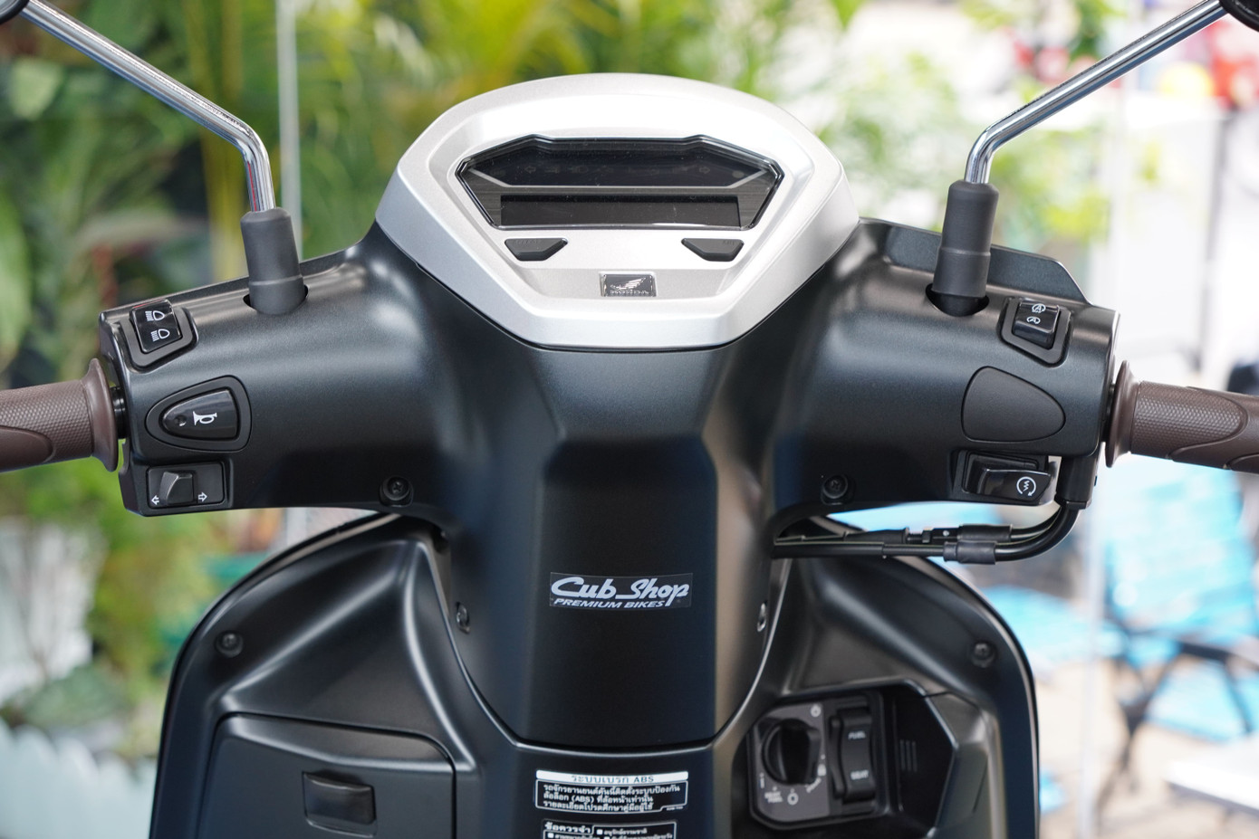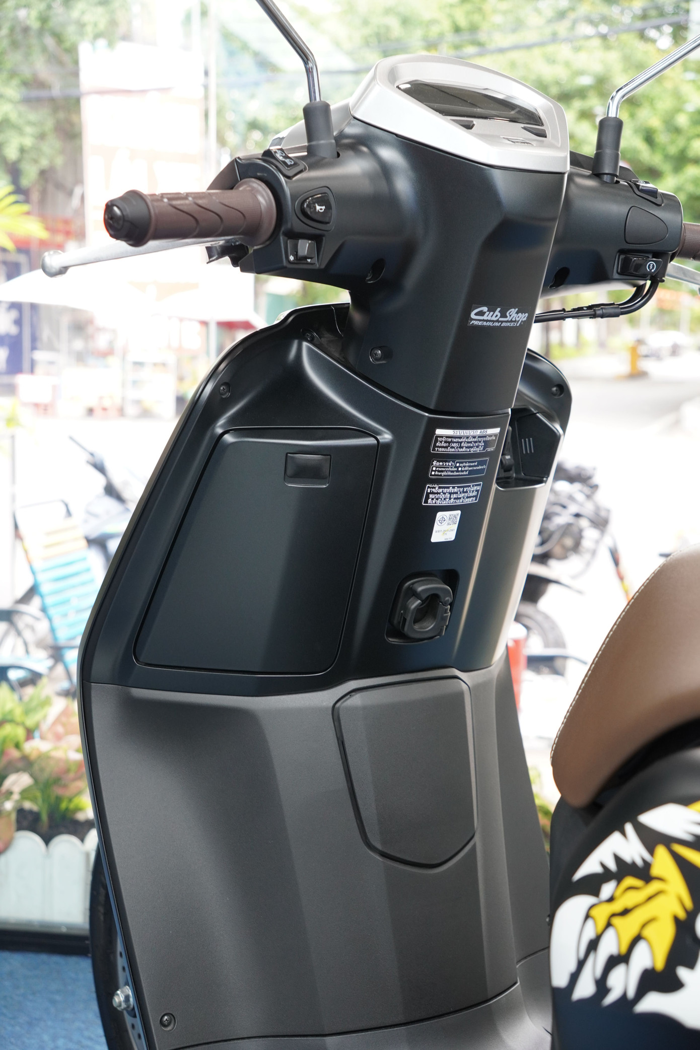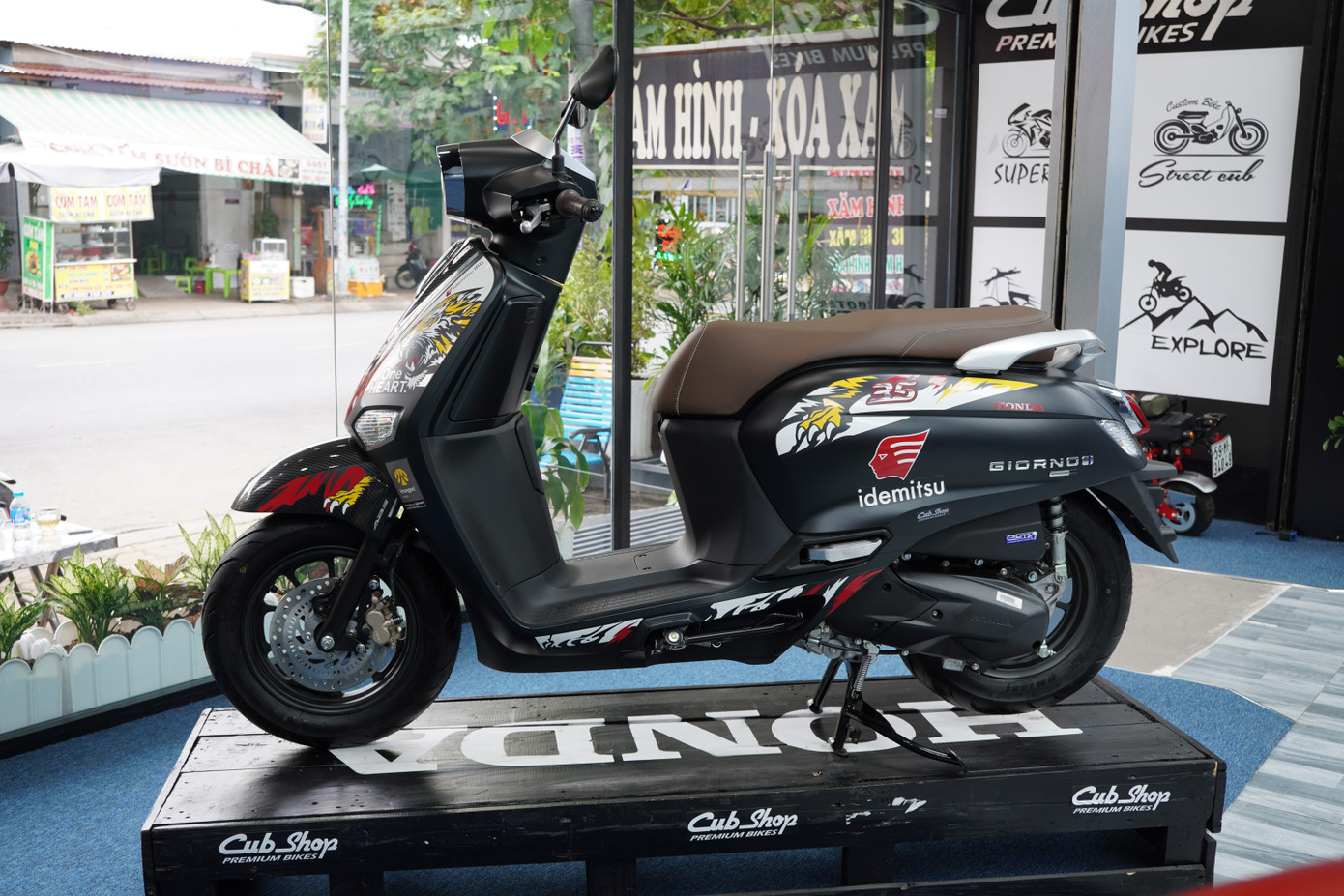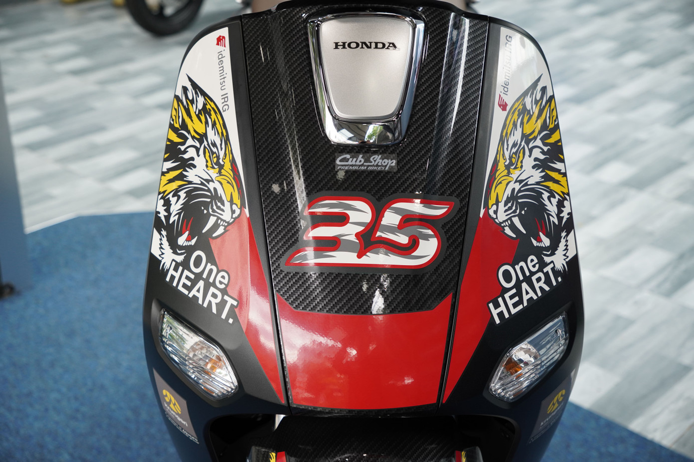Điểm nhấn đặc biệt nhất trên chiếc Honda Giorno+ Moto2 ThaiGP chính là lớp ngoại thất đen nhám cùng bộ tem độc quyền lấy cảm hứng từ chiếc xe đua "Roaring Tiger" của tay đua nổi tiếng Somkiat Chantra người Thái Lan.