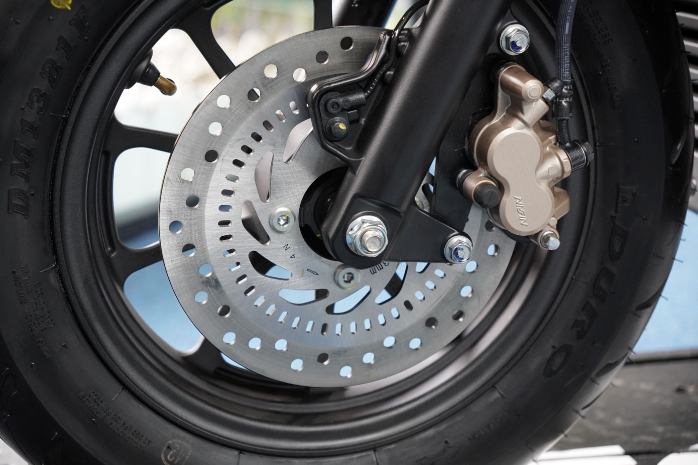 Xe được trang bị bộ vành đúc 12 inch kết hợp lốp không săm, với kích thước bánh trước 100/90-12 59J và bánh sau 110/90-12 64J.