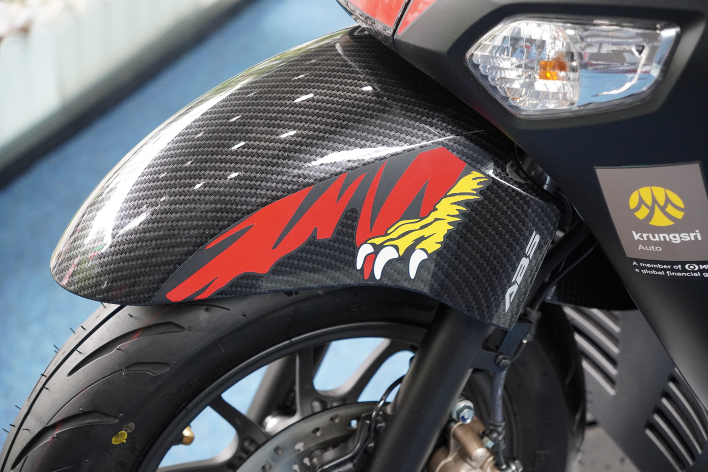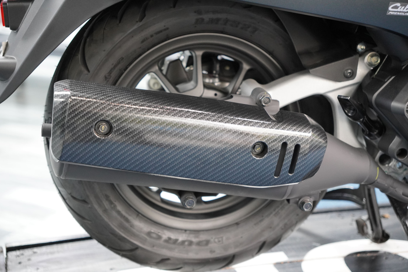 Một số chi tiết như mặt nạ ốp trung tâm yếm trước, vè chắn bùn trước hay ốp bảo vệ ống xả được trang trí họa tiết của vật liệu sợi carbon.