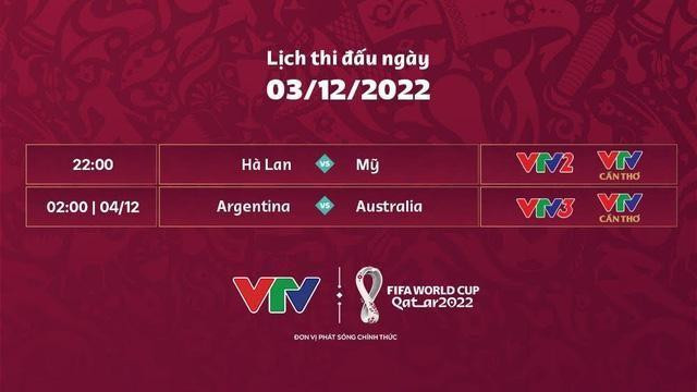 Trận đấu giữa Argentina vs Australia diễn ra lúc 2h00 ngày 4/12 được VTV tường thuật trực tiếp trên kênh VTV3 và VTV Cần Thơ cũng như ứng dụng VTVGo. Ngoài ra, khán giả có thể xem trực tuyến các kênh sóng này miễn phí thông qua ứng dụng TV360 của Viettel.